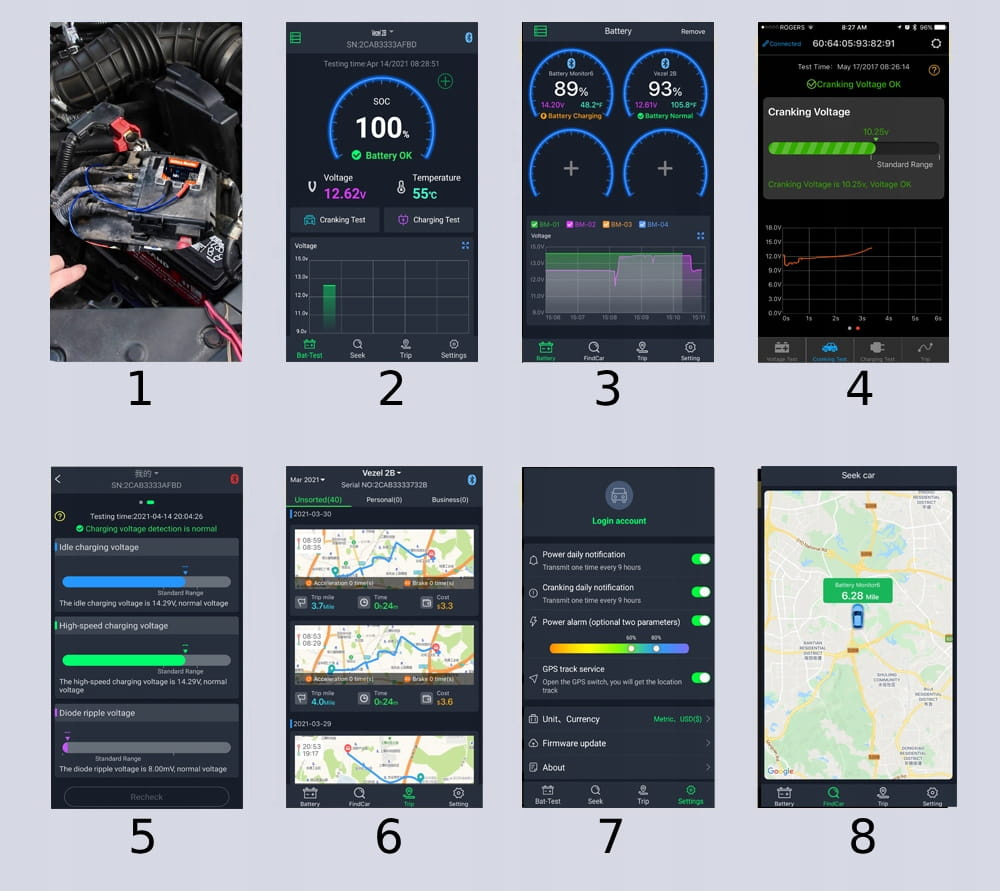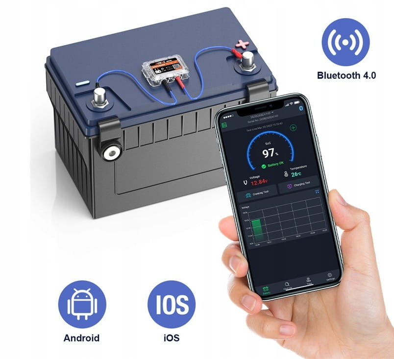 Tester baterie și alternator, cu GPS, aplicație Android iOS