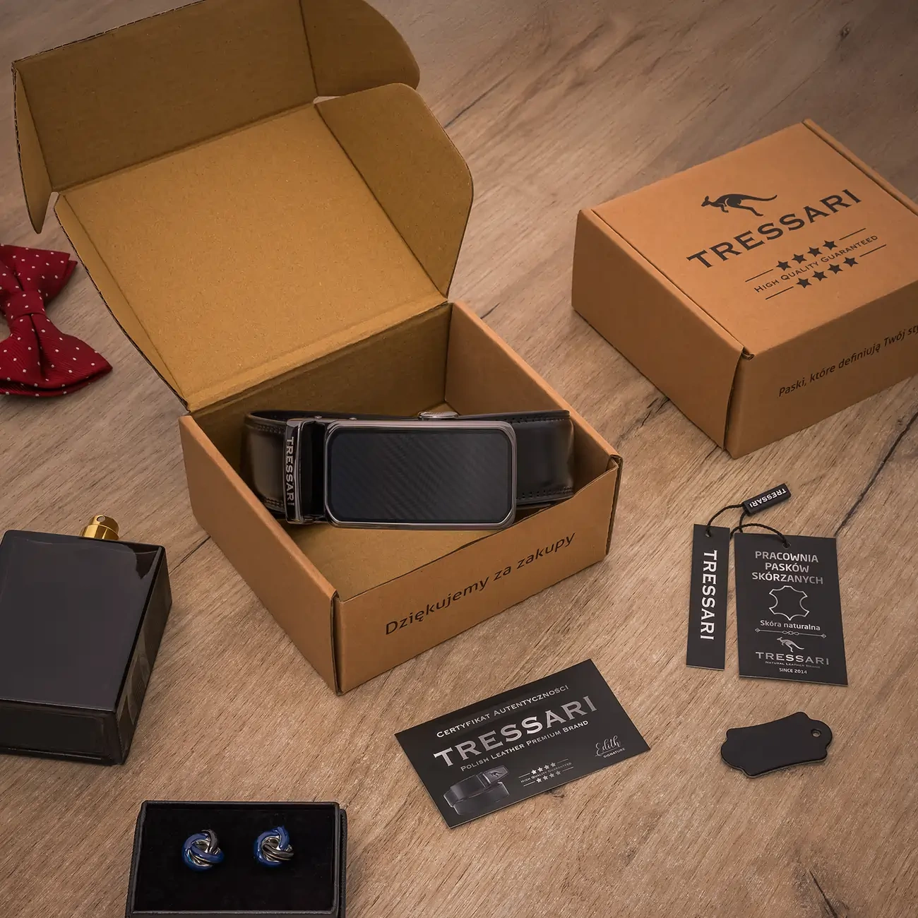 Fiecare cu logo-ul TRESSARI este împachetat cu grijă o curea exclusivă b>, ceea ce îl face un cadoul perfect pentru soțul, tatăl, iubitul sau prietenul tău. Este o combinație armonioasă de eleganță, funcționalitate și prestigiu care va satisface așteptările chiar și ale celor mai pretențioși.