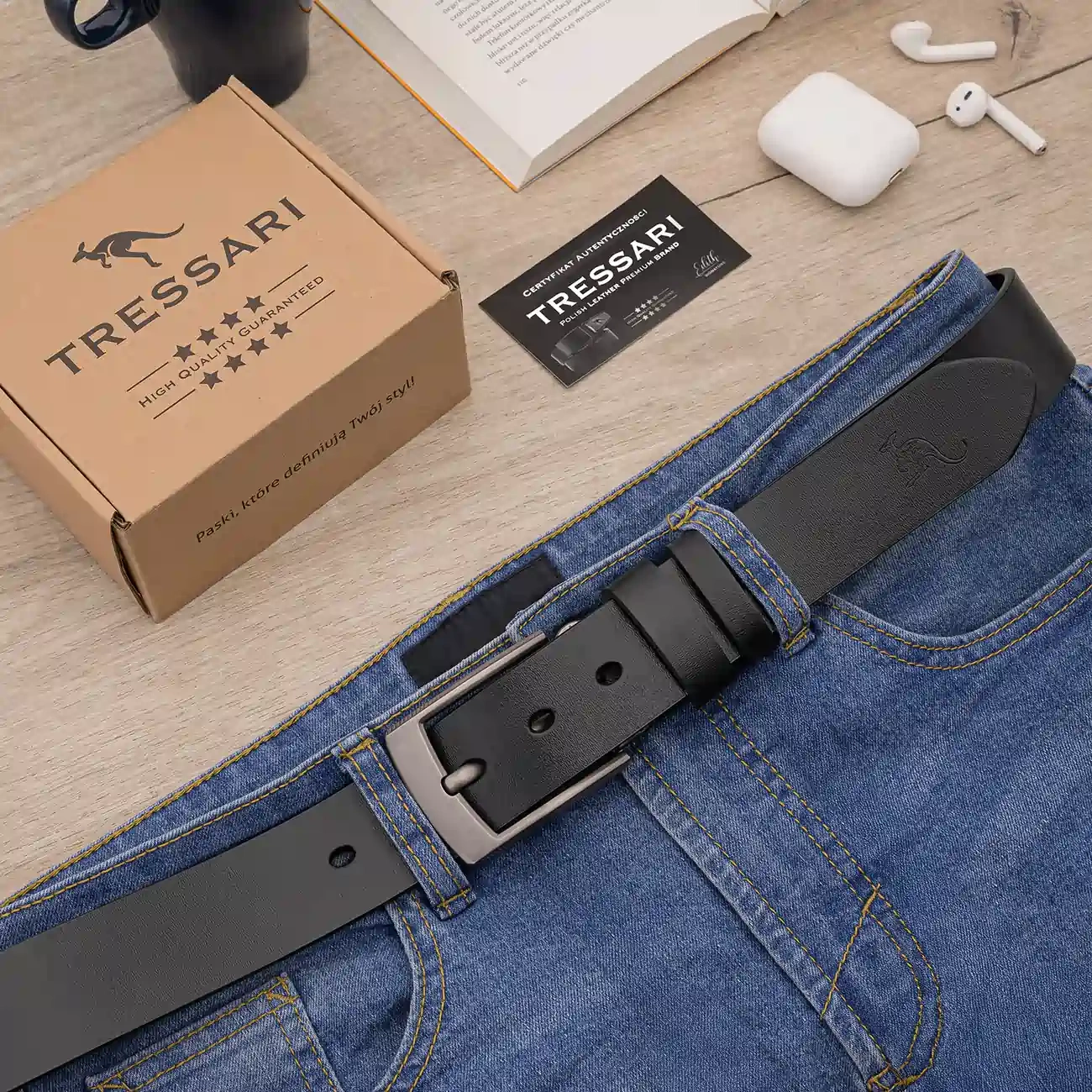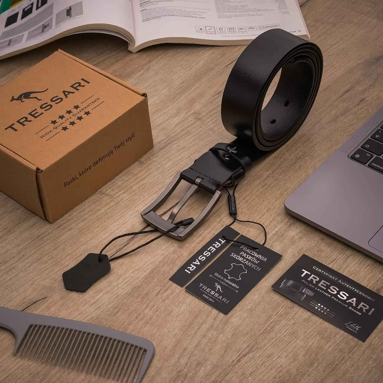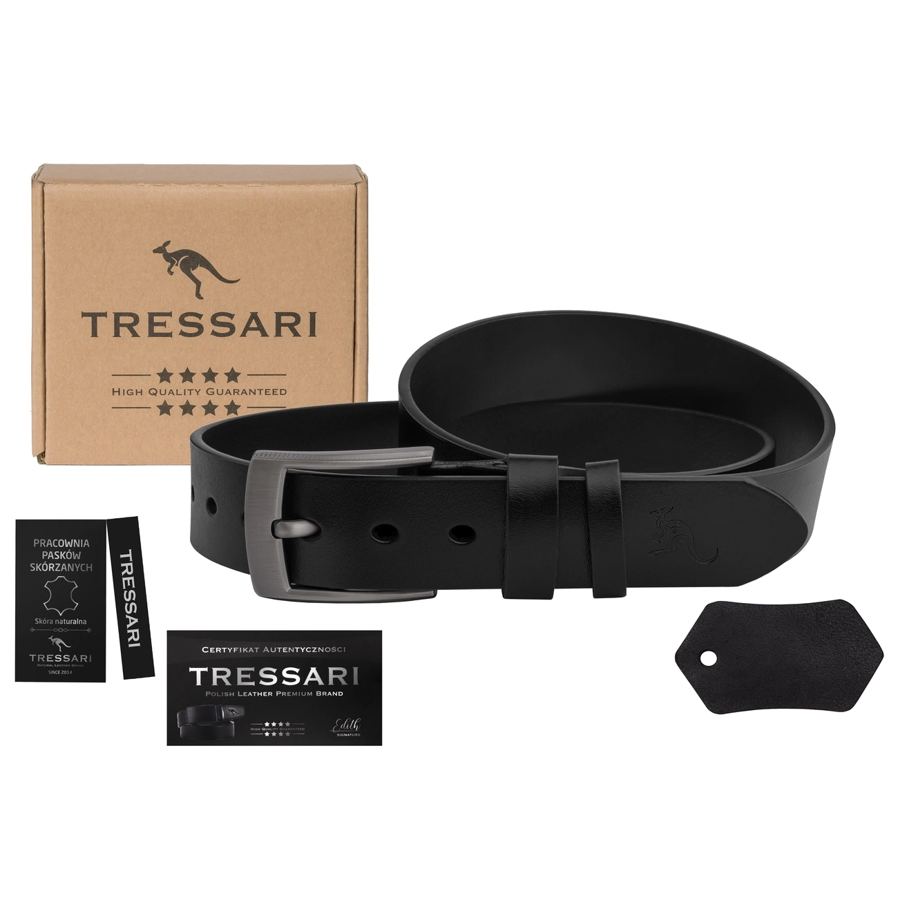 Atunci când cumpărați cureaua bărbătească TRESSARI, o primiți într-un ambalaj elegant, ecologic - perfect cadou. Setul include, de asemenea, un certificat de autenticitate, o etichetă și o probă de piele, care subliniază prestigiul produsului. Este o alegere excelentă ca cadou pentru diverse ocazii - Zile de naștere, sărbători sau aniversări .