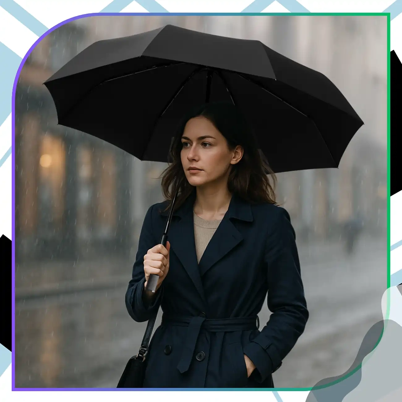 Noua umbrelă elegantă pliabilă – o umbrelă neagră cu structură întărită este un companion de încredere în orice vreme. Concepută având în vedere confortul și durabilitatea, această umbrelă automată combină designul modern cu funcționalitatea maximă. Este perfectă atât pentru ploaie, cât și pentru soare strălucitor, oferind protecție eficientă și un aspect elegant.