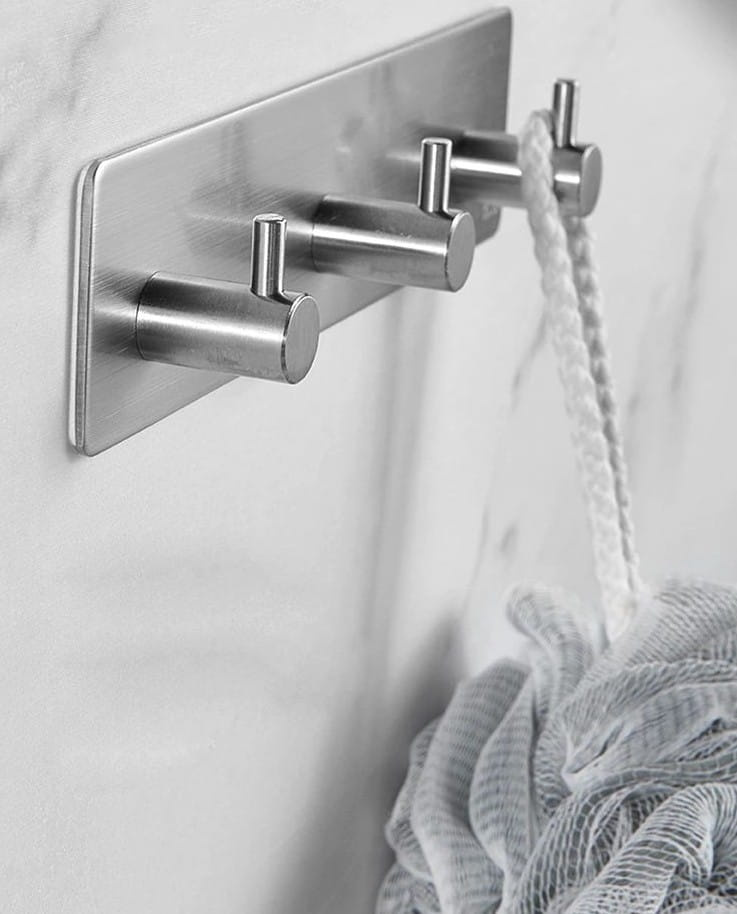 Cârligul de perete argintiu autoadeziv de calitate superioară din gama noastră are o culoare argintie elegantă. Produsul poate fi utilizat în bucătărie, baie, hol sau dressing. Numărul mare de cârlige înseamnă că toată lumea din casă își va putea agăța prosoapele și accesoriile de baie pe cuier.