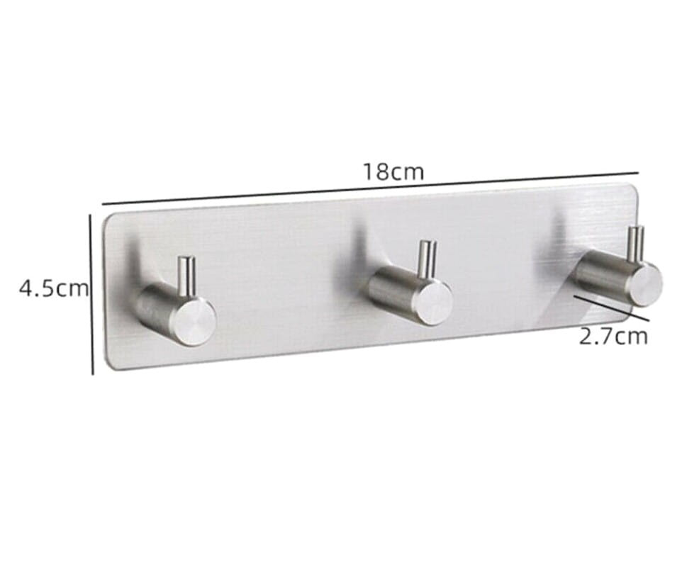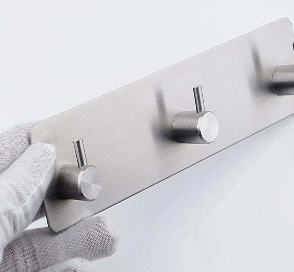 Suportul adeziv pentru panouri de perete recomandat de noi, cu cârlige argintii, este fabricat din oțel inoxidabil periat, care este extrem de rezistent la deteriorări. Produsul este echipat cu trei cârlige practice, distribuite simetric pe baza dreptunghiulară a panoului. Distanța dintre agățător și perete este de 3 cm.