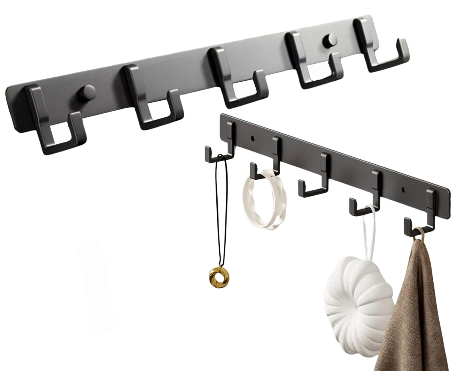 Umeraș panou cu 5 cârlige, rezistent, montat pe perete, mansardă neagră