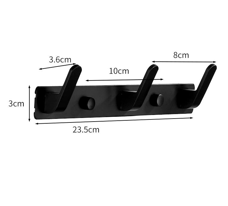 Cârligul de perete negru puternic recomandat are o formă dreptunghiulară cu dimensiuni de 23,5 cm lungime și 3 cm lățime.