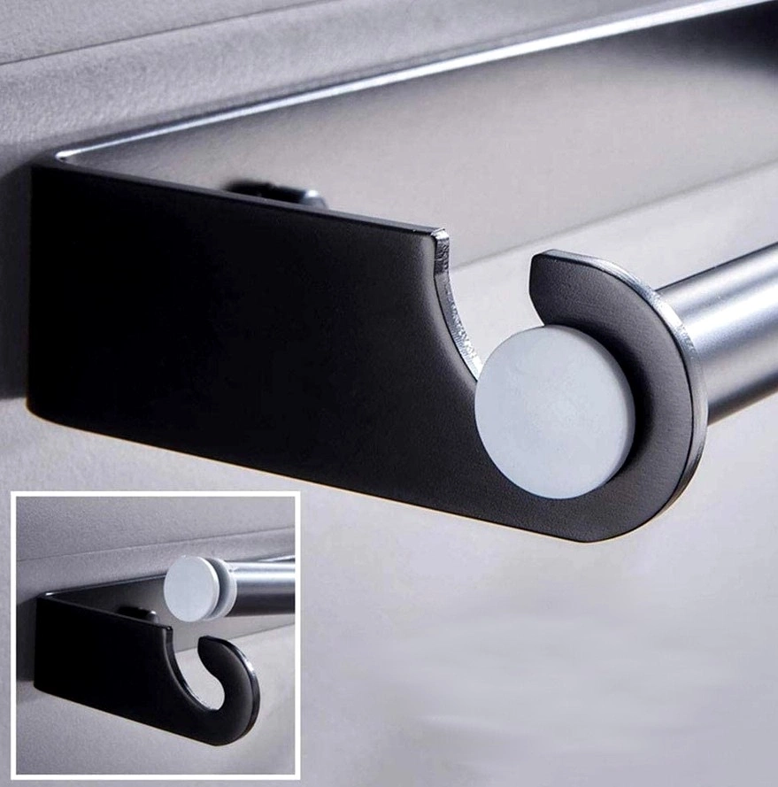 Suportul negru pentru prosoape pe care îl recomandăm este fabricat într-o culoare neagră universală. Suprafața produsului este mată.