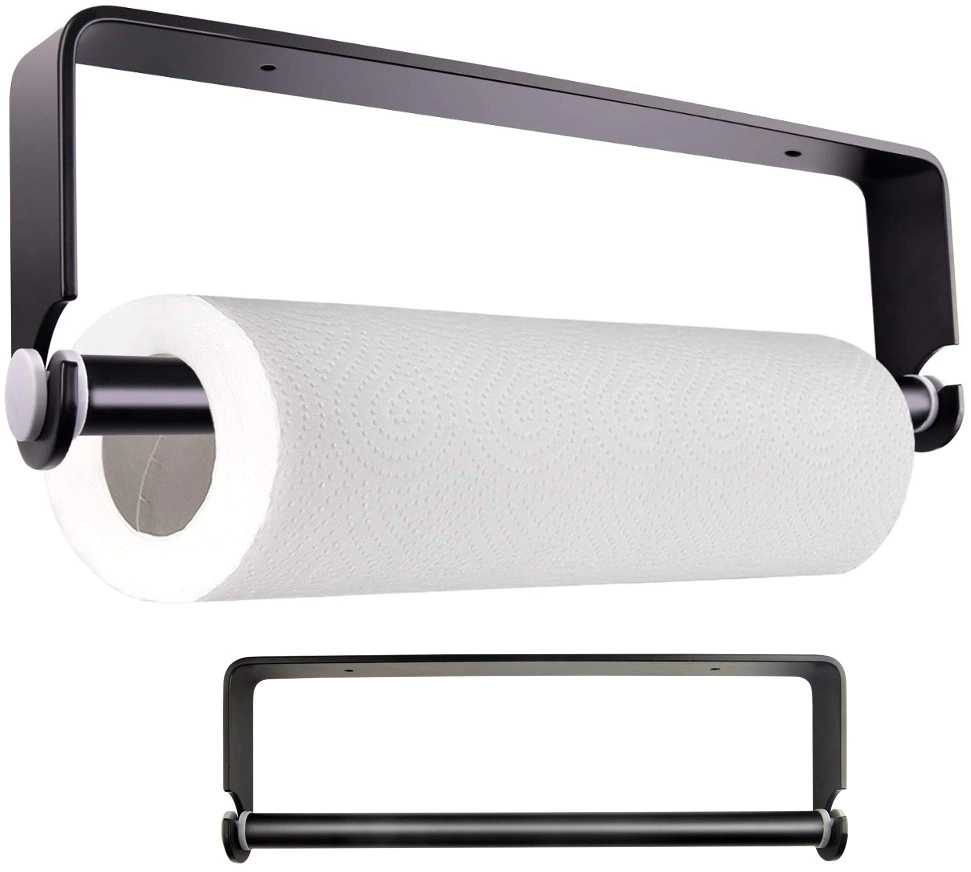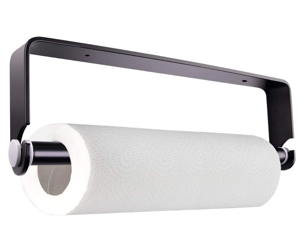 Suport pentru prosoape de hârtie negru - un produs pentru depozitarea ușoară a accesoriilor de bucătărie.