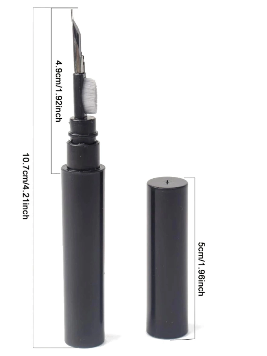 Sub vârful stiloului se află o perie moale din microfibră care poate curăța cu ușurință orificiile dopurilor de urechi și alte părți