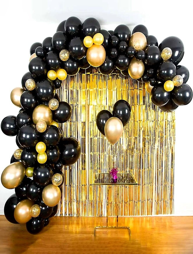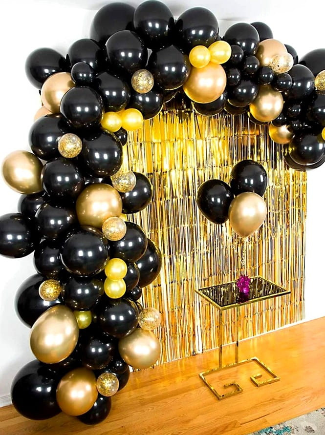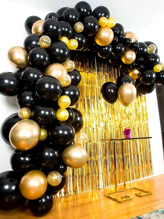 Cu ajutorul acestor baloane unice, puteți decora camera pentru o petrecere aniversară, nuntă sau chiar Revelion și bal de carnaval. Cei care organizează evenimente corporative, de asemenea, ajung adesea la kitul de ghirlandă de baloane confetti aur negru.