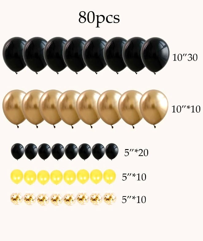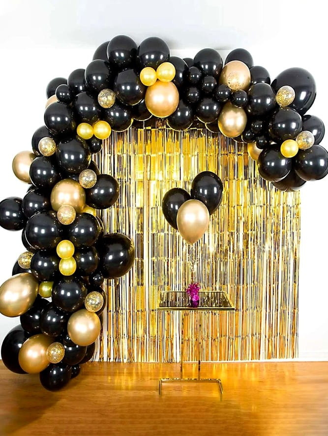 Ghirlanda de baloane este un decor care încântă din ce în ce mai mulți utilizatori, așa că pentru a răspunde așteptărilor clienților noștri oferim un kit de ghirlandă frumoasă de 80 de baloane confetti aur negru.